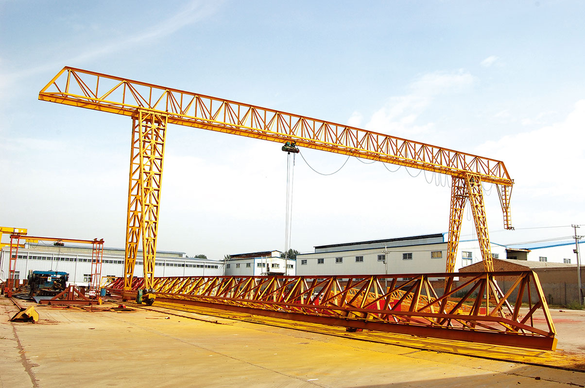 它的金屬結構像門形框架,承載主梁下安裝兩條支腳,可以直接在地面的軌道上行走,主梁兩端可以具有外伸懸臂梁。