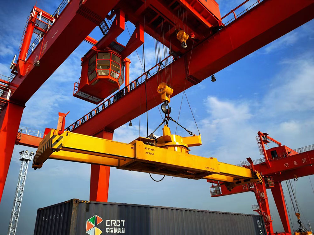 門式起重機(jī)是橋式起重機(jī)的一種變形,又叫龍門吊。主要用于室外的貨場、料場貨、散貨的裝卸作業(yè)。門式起重機(jī)具有場地利用率高、作業(yè)范圍大、適應(yīng)面廣、通用性強(qiáng)等特點,在港口貨場得到廣泛使用。