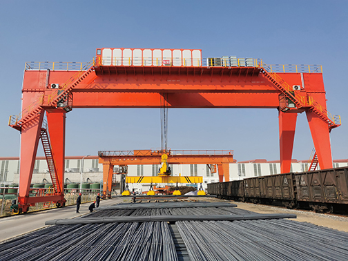 它的金屬結(jié)構(gòu)像門形框架,承載主梁下安裝兩條支腳,可以直接在地面的軌道上行走,主梁兩端可以具有外伸懸臂梁。